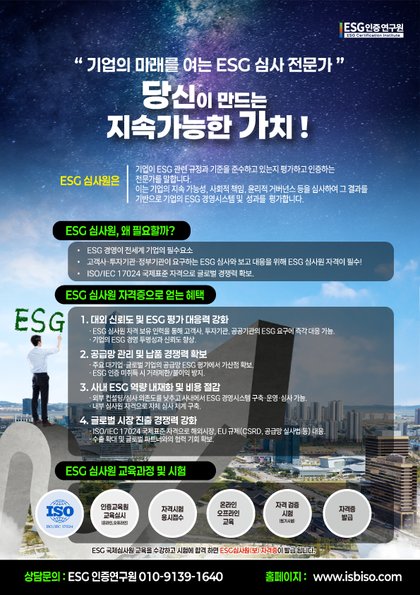 ▶신청하기: ISO ESG 심사원(국제자격증)