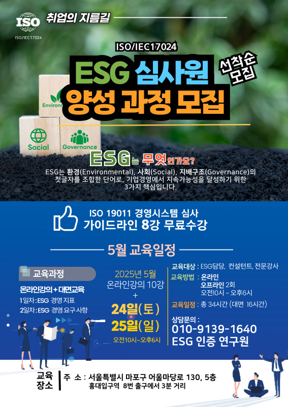 ▶신청하기: ISO ESG 심사원(국제자격증)